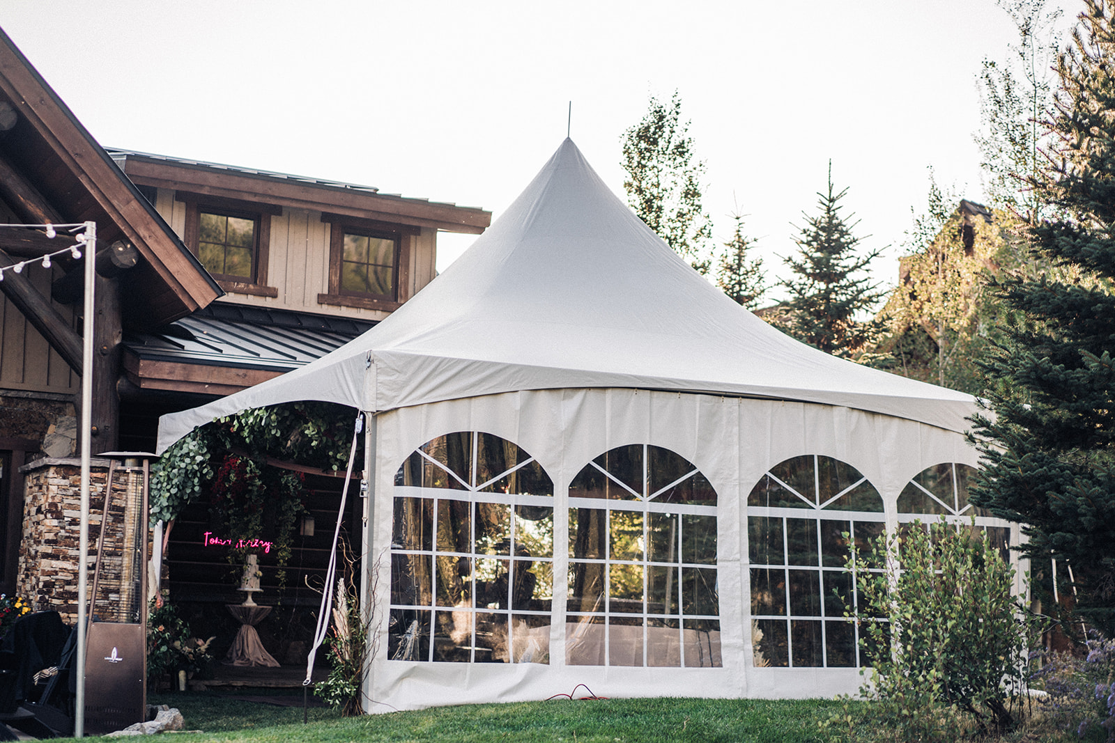 Description: This 20' x 20' tent fits four round tables under it. Walls are not included in the rental price and can be added at an additional cost.
