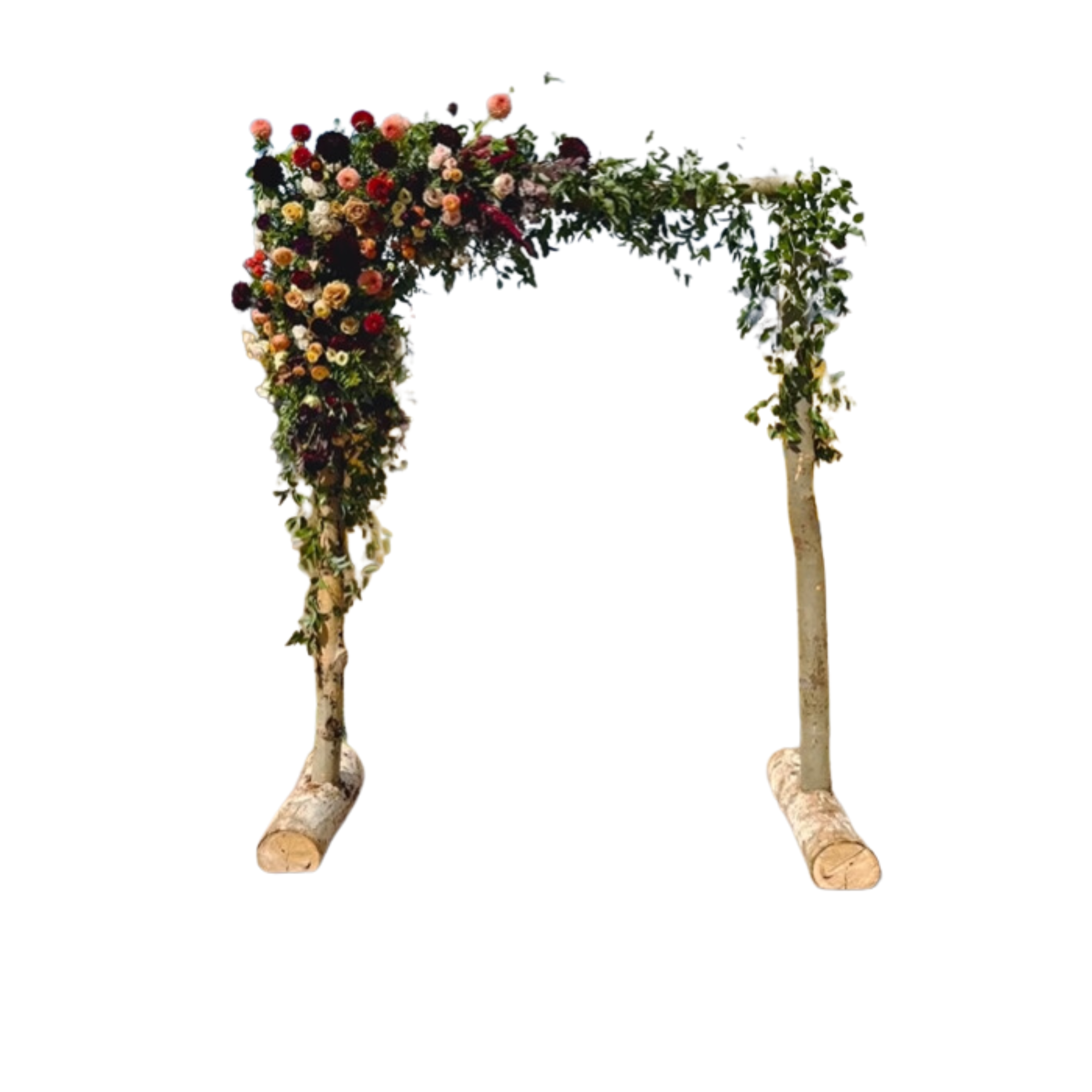Description: A simple arch with three aspen logs. The decor pictured is not included. The arch measures 7 feet tall and 6 feet wide.