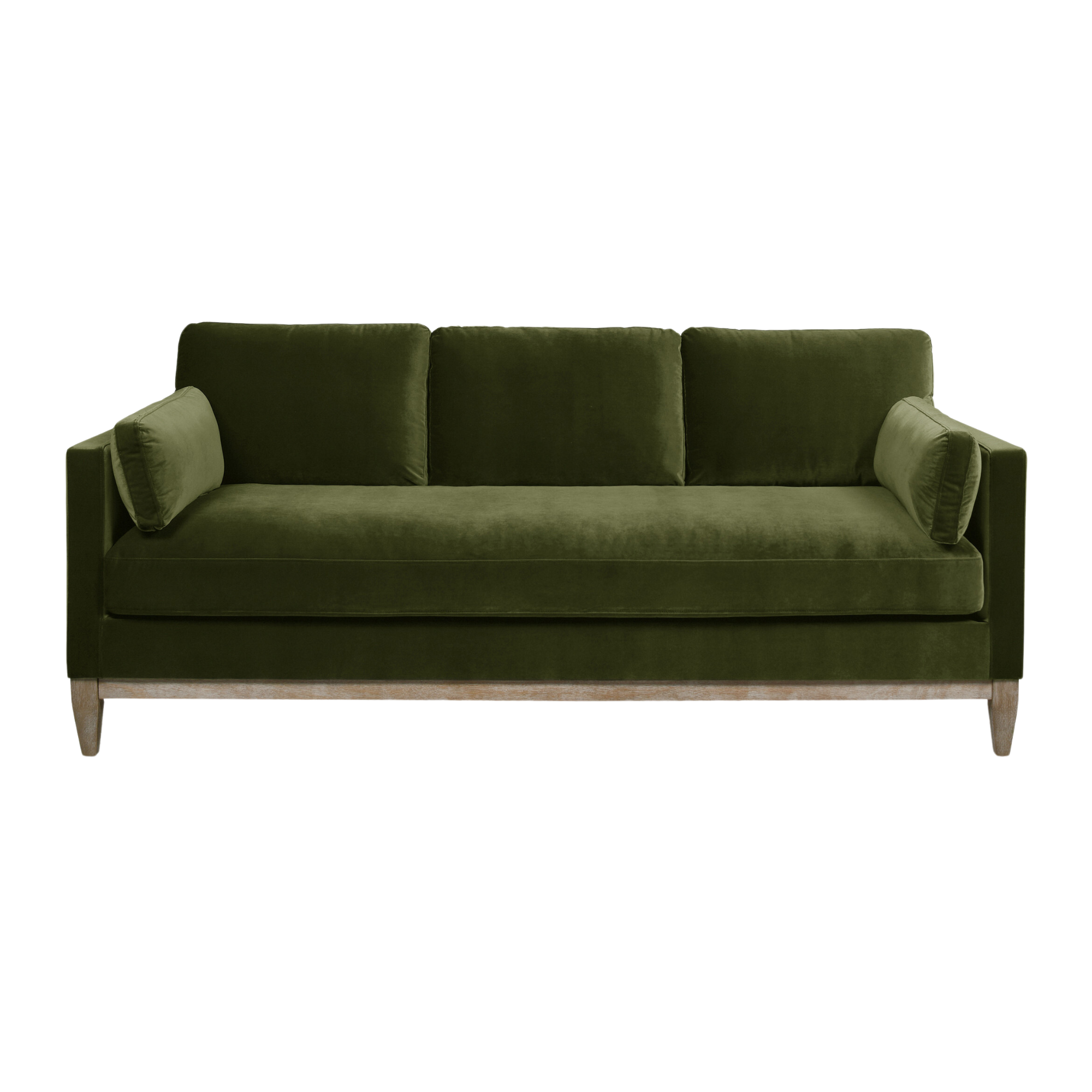Description: Chic and cozy, this green velvet sofa brings elegance and a pop of color to any event or lounge area.