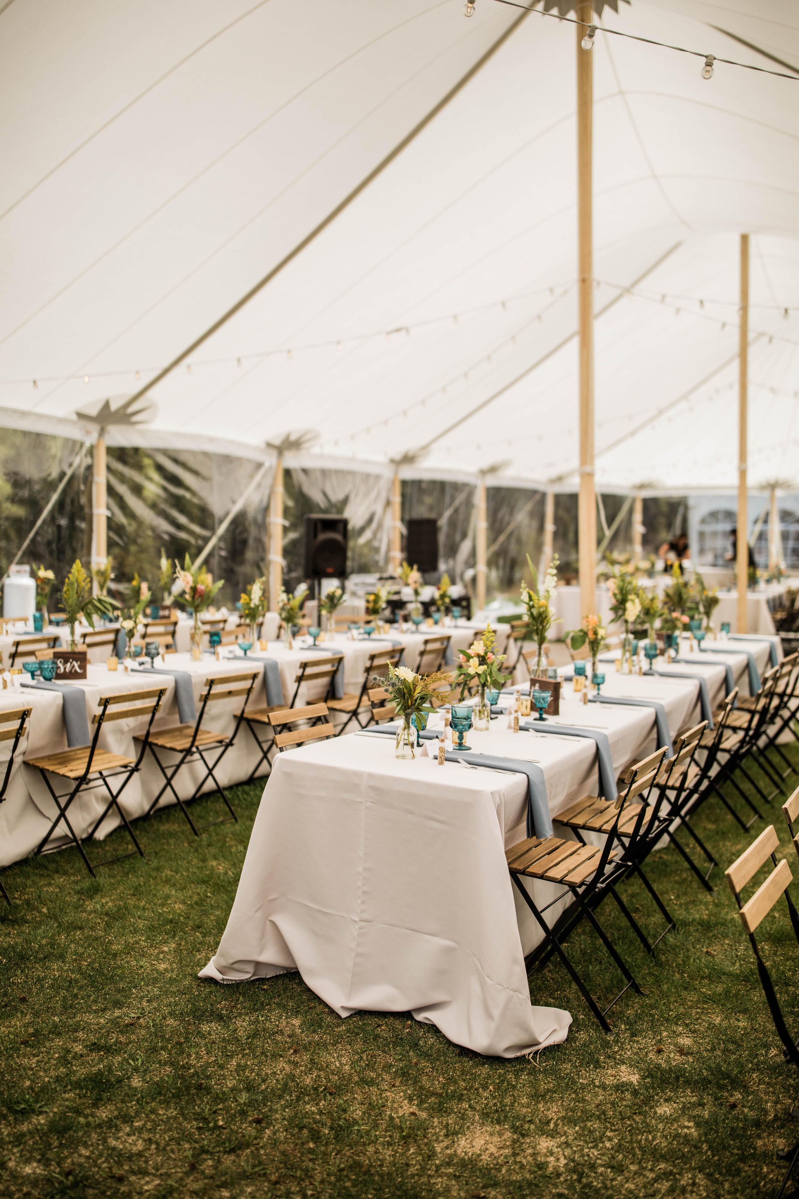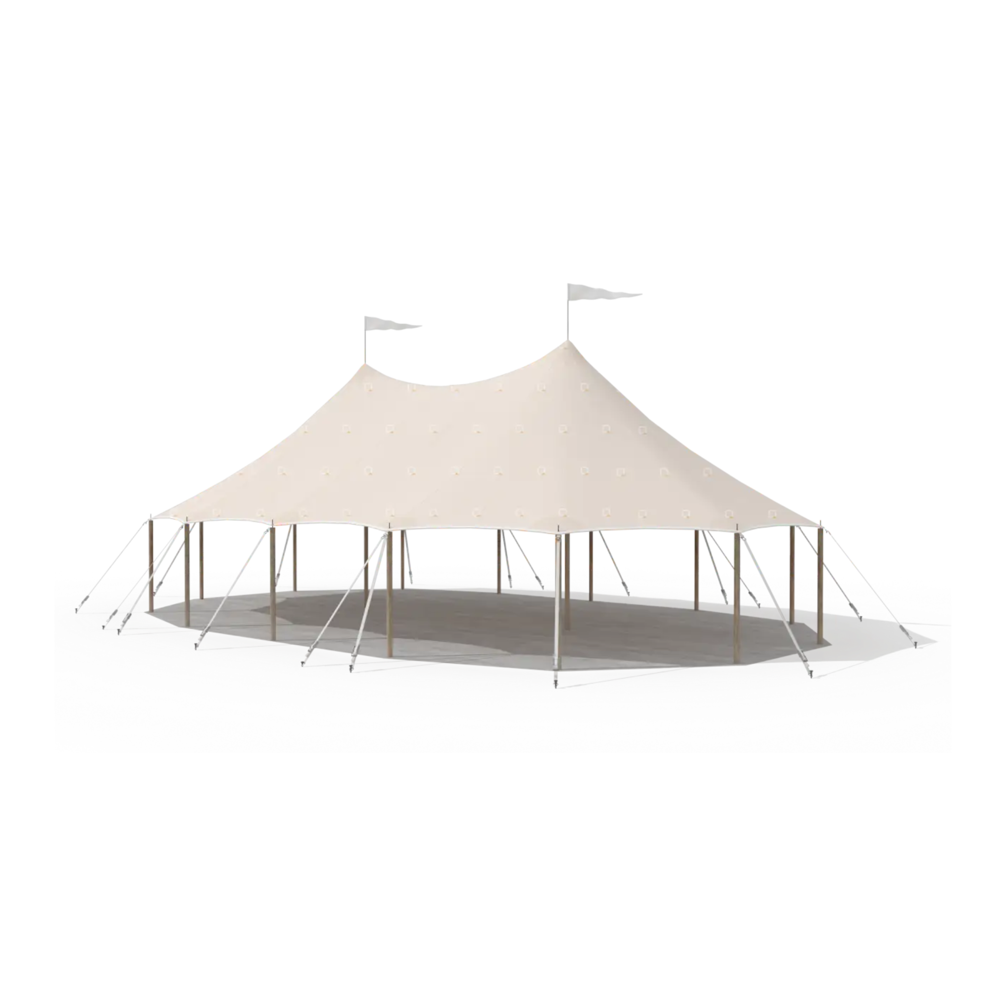 Like all our hand-sewn sailcloth tents, the 32' x 51' tent is made from genuine and durable ivory sailcloth. Its soft, natural appearance allows event lighting to shine, creating a warm glow as the day turns into the evening.