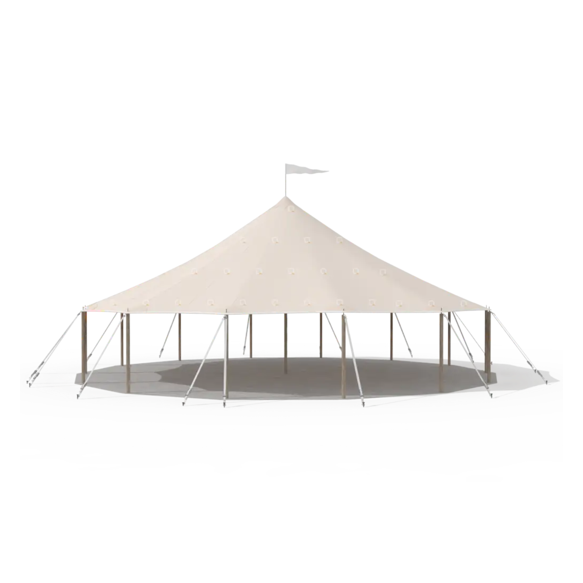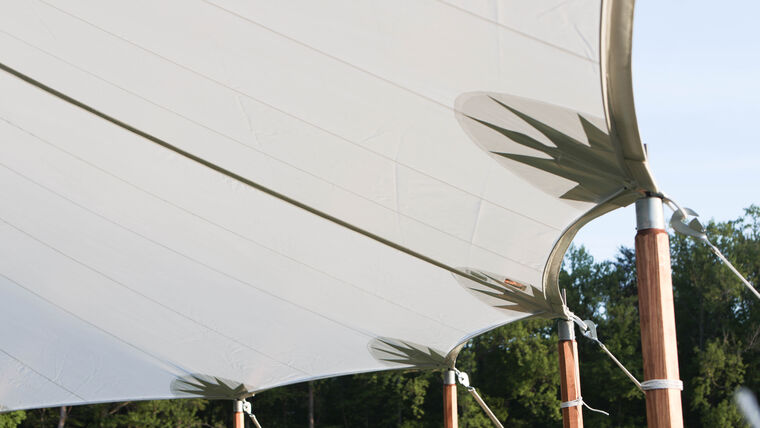 Like all our hand-sewn sailcloth tents, the 45’ Round is crafted from genuine and durable ivory sailcloth. Its soft, natural appearance is translucent to event lighting, creating a beautiful glow as day turns into evening.