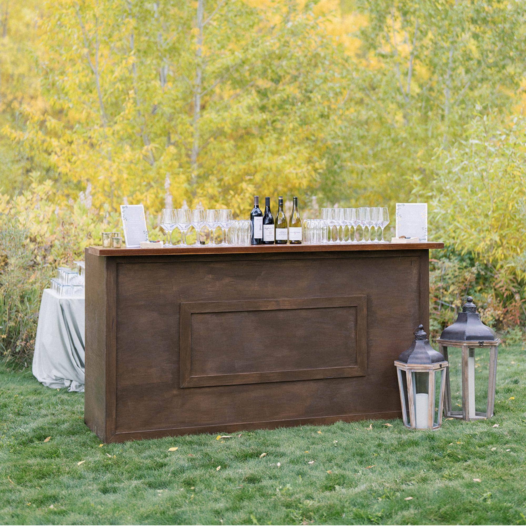Description: Rustic and elegant, this timber bar adds charm and functionality and is perfect for serving beverages in style