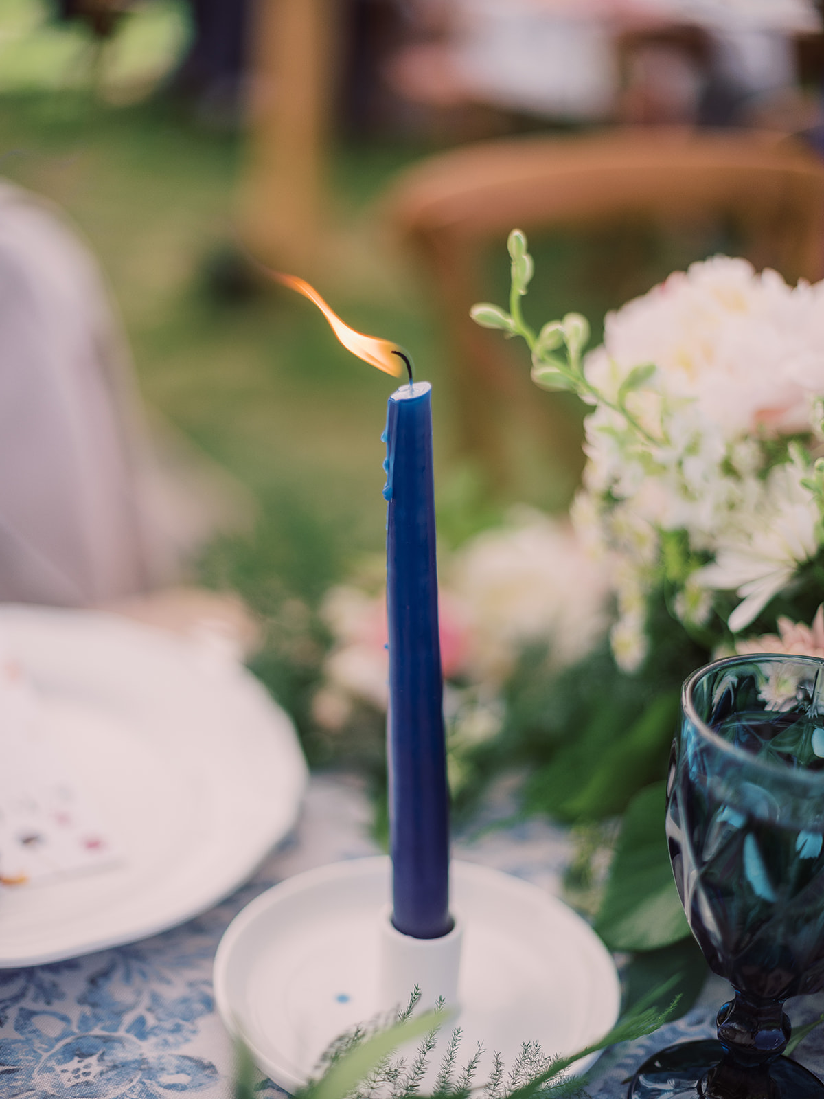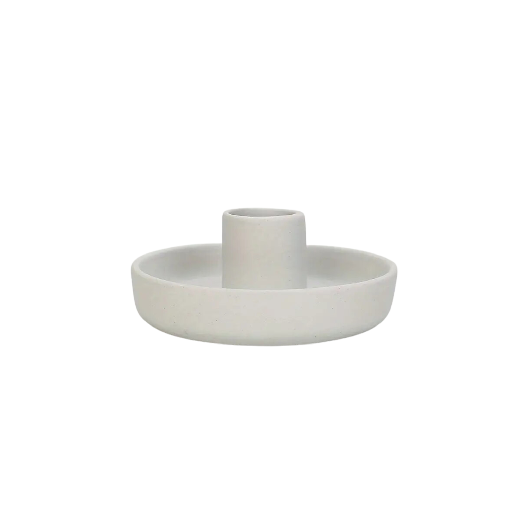 The neutral color of this candlestick holder makes your colorful taper candle pop.