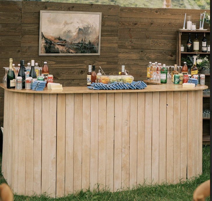 Description: Charming and versatile, this whitewash wood bar adds a rustic yet refined touch to any event, perfect for drink service and as a stylish focal point.
