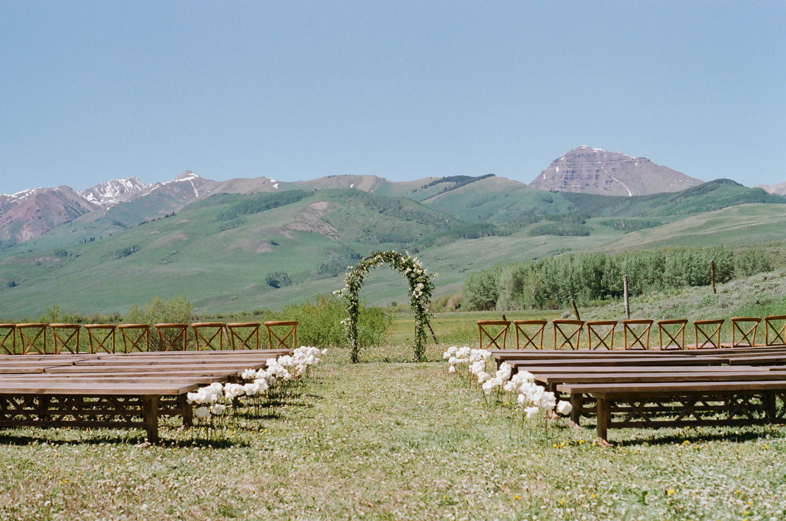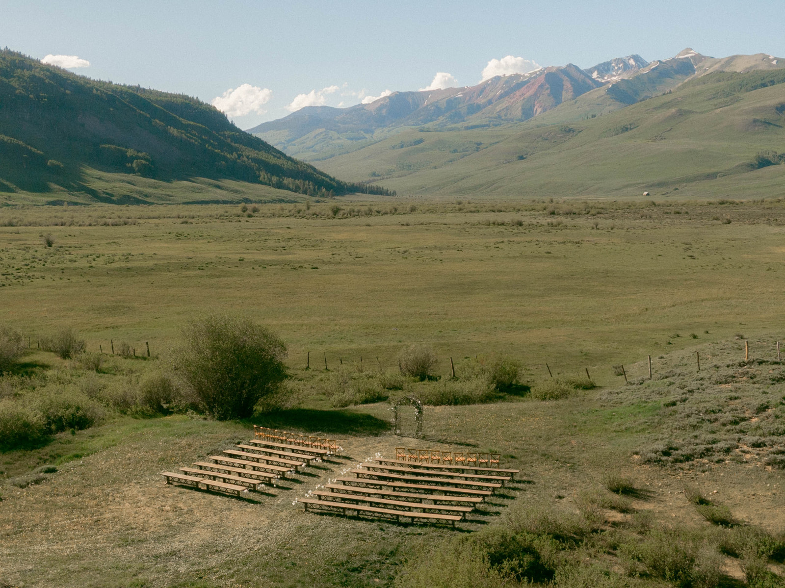 Description: Benches are 90" long x 18.5" high and 18" wide, and seat 4 people comfortably.