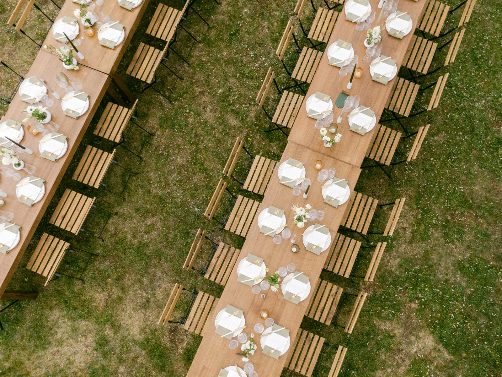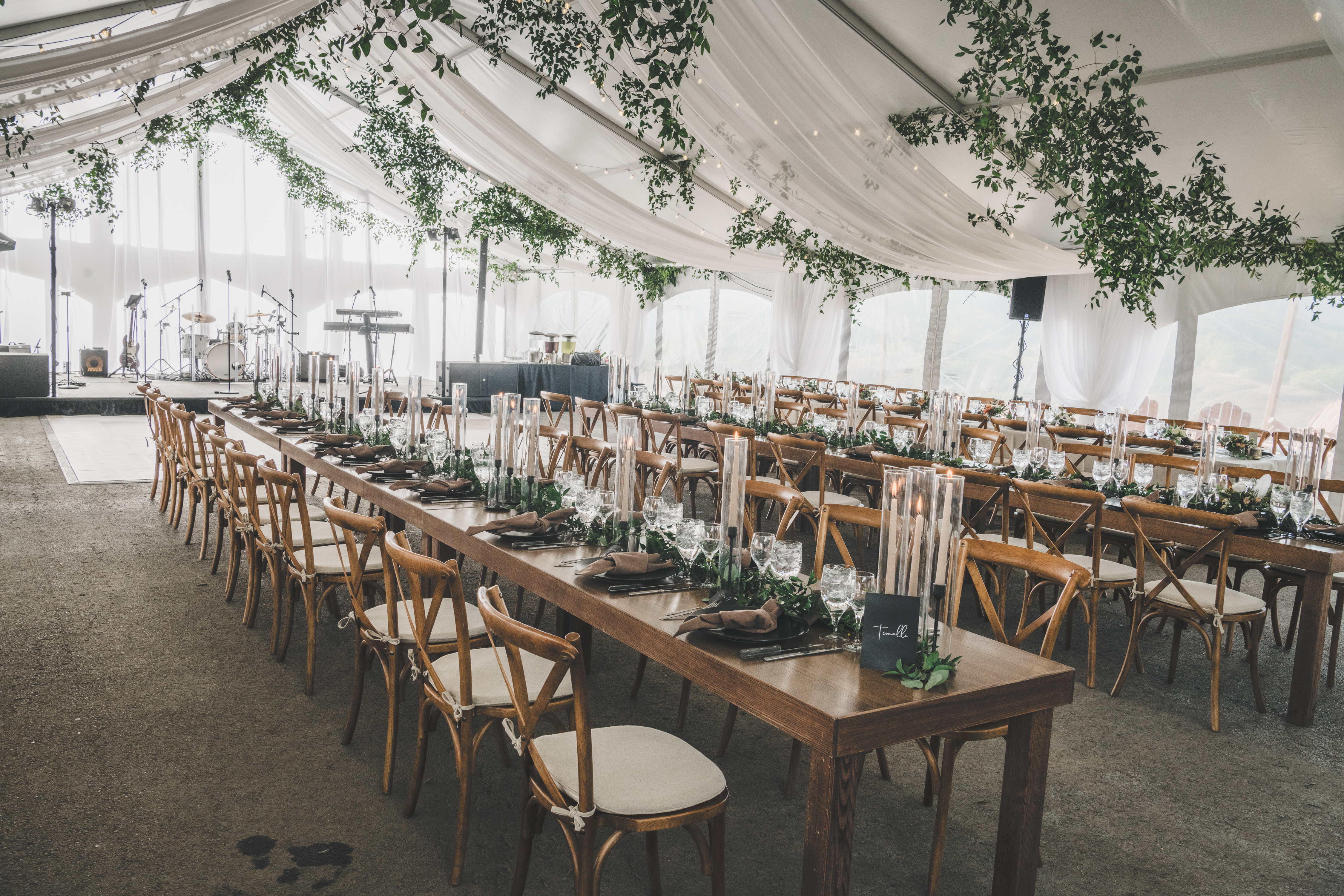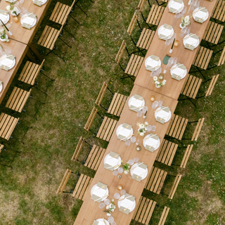 Description: These farm tables are 8-feet long, comfortable to seat four people on each long side.