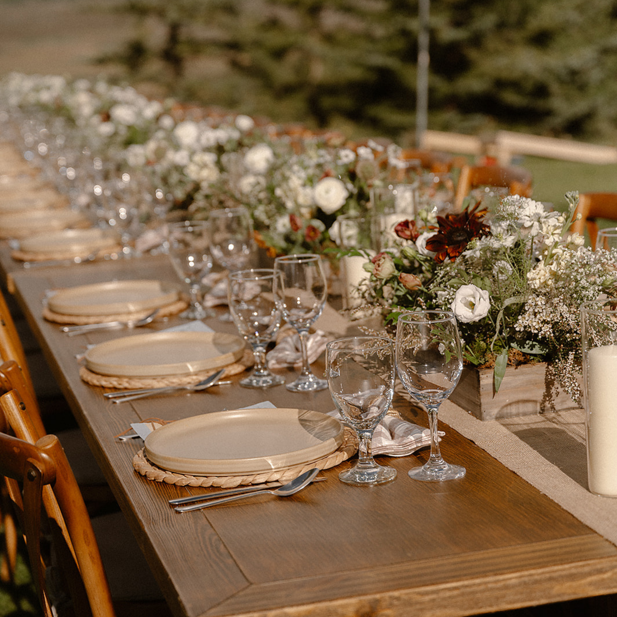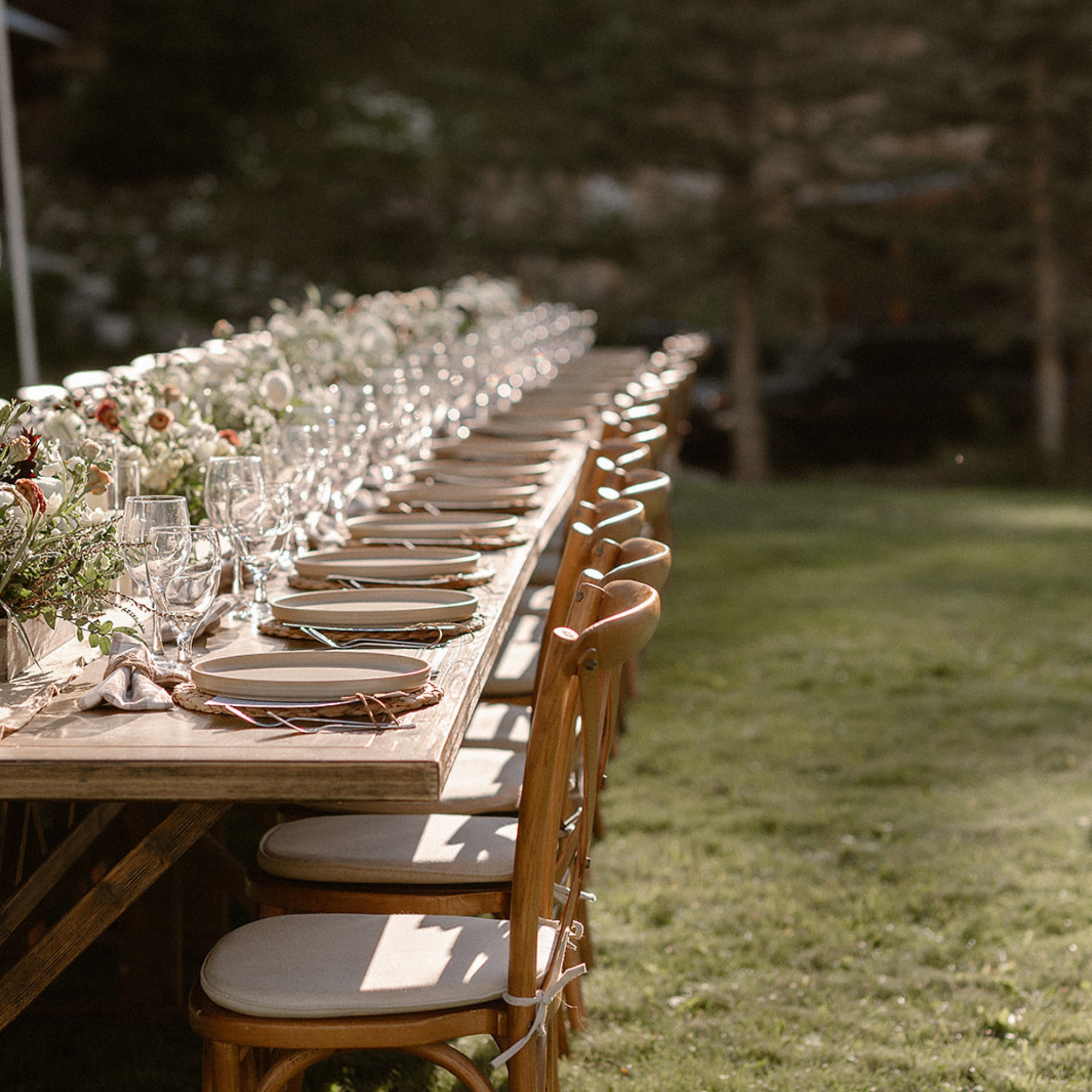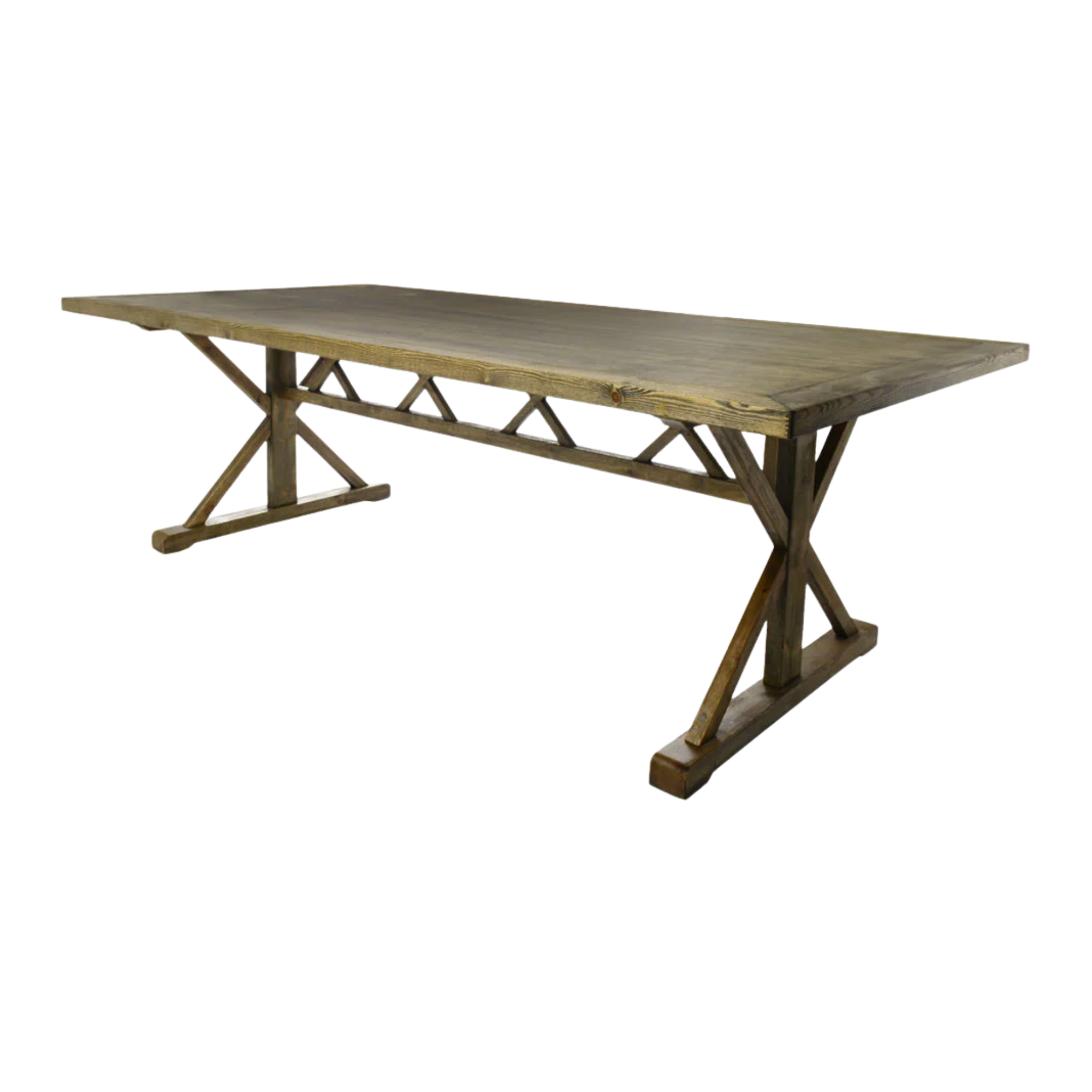 Description: This beautiful X leg farm table is eight feet long and 48" wide, creating enough space for a full place setting and lush centerpieces. This table comfrtably seats 4 people on the long side and 1-2 on the end, for a total of up to 12 seats.